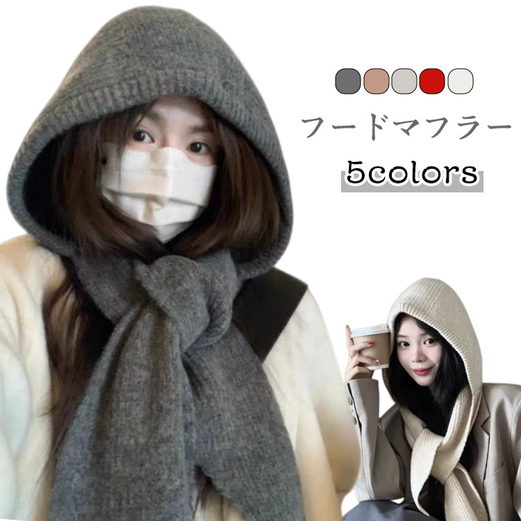 マフラー フード付き レディース スカーフ 帽子 防寒 暖かい ニット帽 秋 冬 ストール カジュアル アウター 韓国ファッション