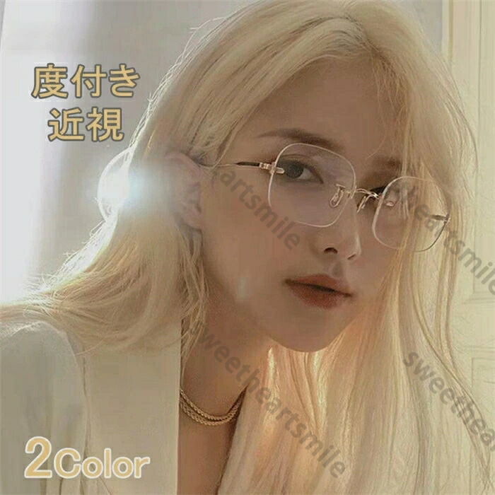 メガネ レディース おしゃれ 度付き 近視 対応 ふちなし リムレス ブルーライトカット標準搭載 めがね 眼鏡 超軽量 ファッションメガネ フリーサイズ 軽い