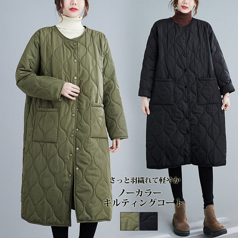 キルティングコート レディース コート 冬 アウター ロングコート 中綿コート ブルゾン ノーカラー 中綿 キルティング キルト 防寒 ジャケット ロング 防寒コート 軽量 暖かい ゆった 軽い
