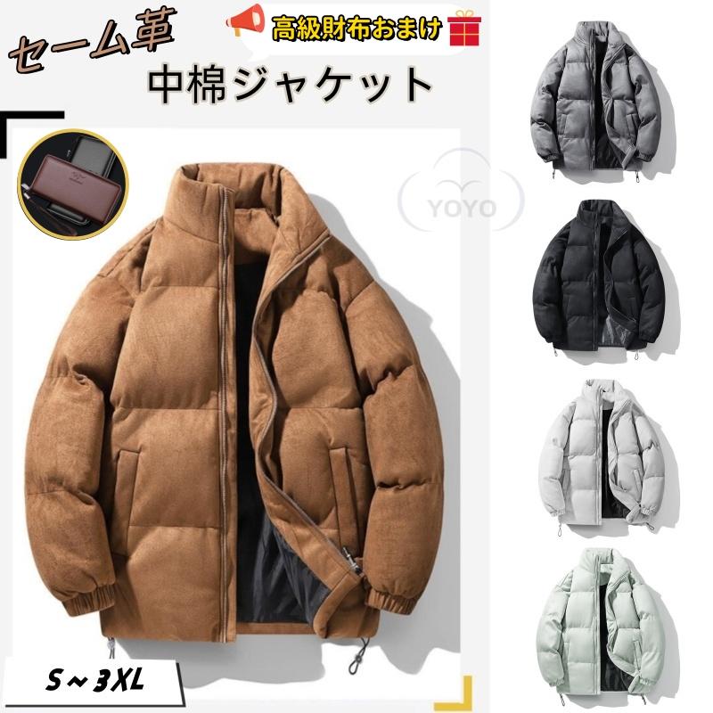 セーム革 コート ダウンジャケット レディース メンズ 中棉入り 厚手 冬服 暖かい 男女兼用 高級感 大人気 中綿ジャケット