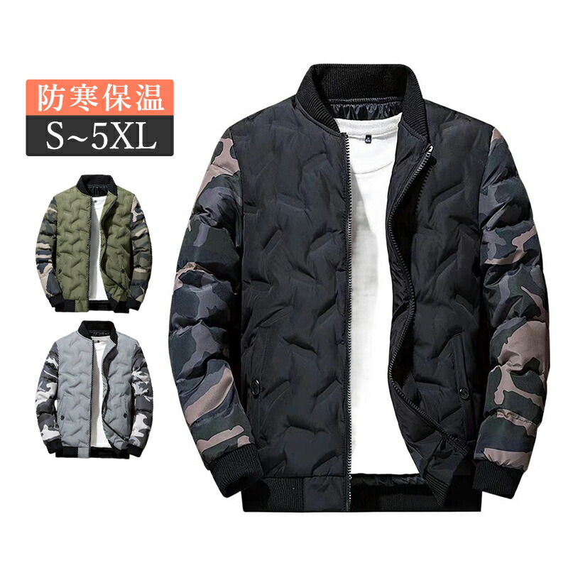 中綿ジャケット おしゃれ メンズ MA-1 ミリタリージャケット レギュラー丈 暖かい 中綿コート 男性 20代 30代 40代 通勤 迷彩 大きいサイズ M L 2XL 3XL オーバーコート XL