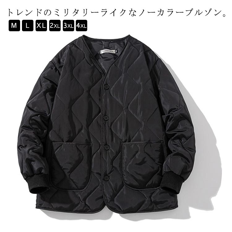 ノーカラーキルティングジャケット ブルゾン メンズ 長袖 中綿 キルティングライナー ライナージャケット
