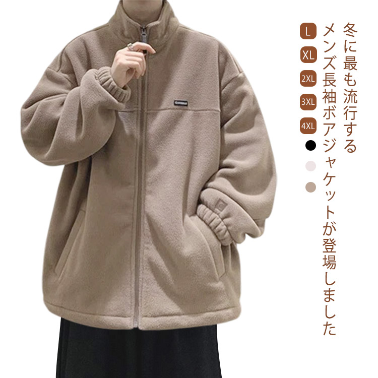 ボアジャケット メンズ フリースジャケット ブルゾン アウター ボア フリース ジャケット 立ち襟 メンズファション ふわふわ もこもこ 暖かい 秋冬 秋 冬 大きいサイズ