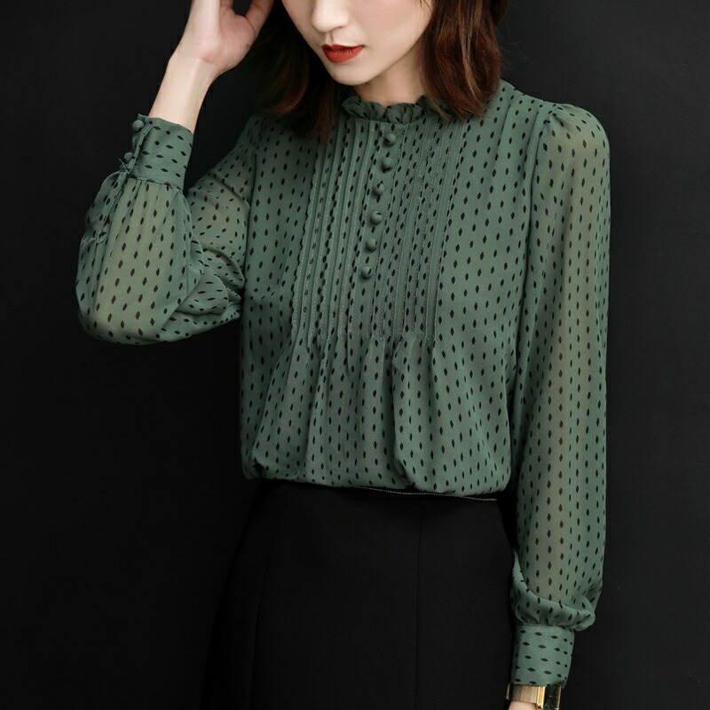 ★ 送料無料 ★ ブラウス シャツブラウス レディース 長袖 水玉柄 ドット柄 シャツ トップス とろみ 春 夏 フリル襟 水玉ブラウス チュニック シフォン プルオーバー