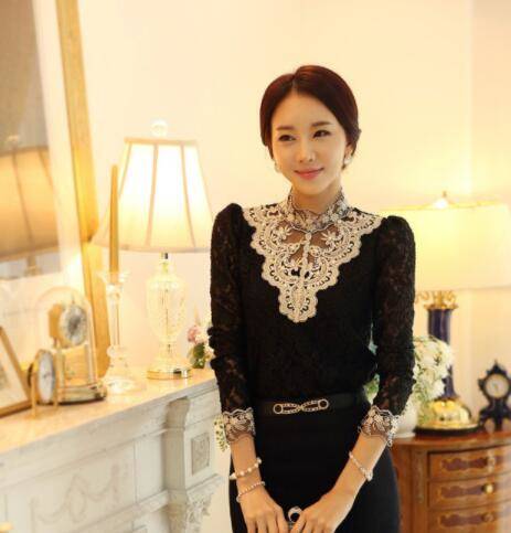 長袖 ブラウス レース ハイネック レースシャツ トップス レースブラウス 立ち襟 カットソー 花柄 レディース 春 秋 冬 OL フォーマル 30代 通勤