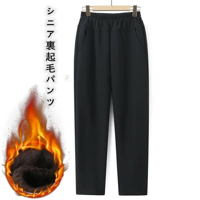 シニア 裏起毛 パンツ 女性 おばあちゃん 祖母 お年寄り 防寒パンツ ルームパンツ 暖かい あったか レディース ズボン ブラック 80代 70代 60代 90代 プレゼント お誕生日 ギフト 秋冬