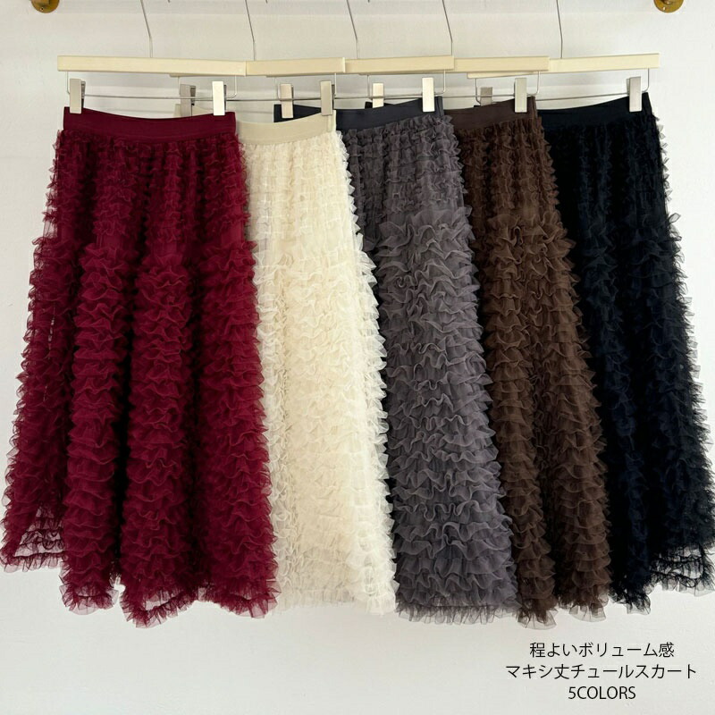 ボリュームチュールロングスカート スカート チュール ロング チュールスカート 大人 程よいボリューム感 ボトムス レディース 秋 冬 春 おしゃれ きれいめ フェミニン