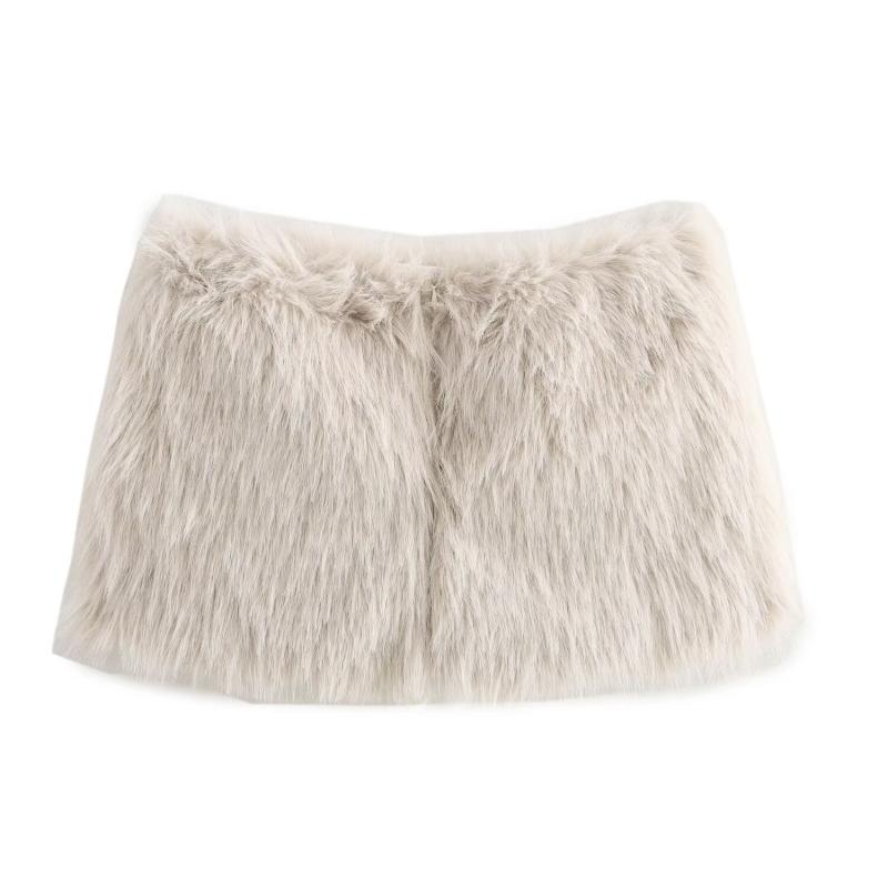 スカート レディース 秋冬 ミニスカート フェイクファー ベージュ ストリート カジュアル 美脚効果 無地