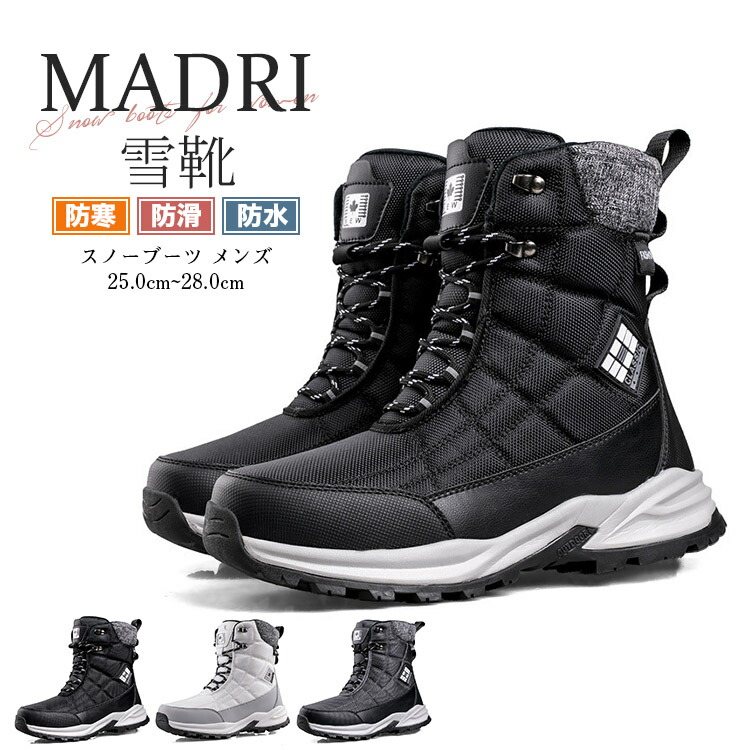 スノーブーツ メンズ 防寒防水 滑らない 裏起毛 アウトドア 登山 雪遊び用 北海道 冬用 ショートブーツ ハイカット 白 グレー 幅広甲高対応 黒