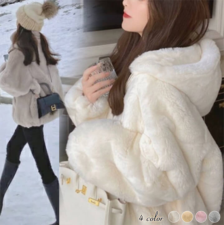 1K ラビットエコファーコート レディース 2タイプ ハイネック フード付き アウターファーコート 防寒 アウターアウトドア 秋 冬 ふわふわ もこもこ ゆったり ファッション カジュアル 厚 暖かい