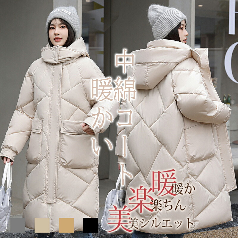 中綿コート レディース コート 冬 50代 きれいめ ロング丈 ロングコート 暖かい 中綿ダウンジャケット 中綿ダウンコート ベンチコート 中綿 フード付き アウター 厚手 通勤 通学 秋冬