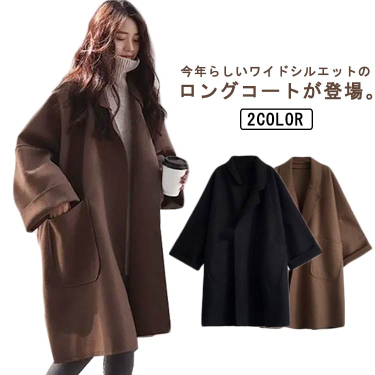 ロングコート レディースコート チェスターコート カシミアタッチ ワイドスリーブ ロング丈 アウター コート 体型カバー 春 秋 ゆったり