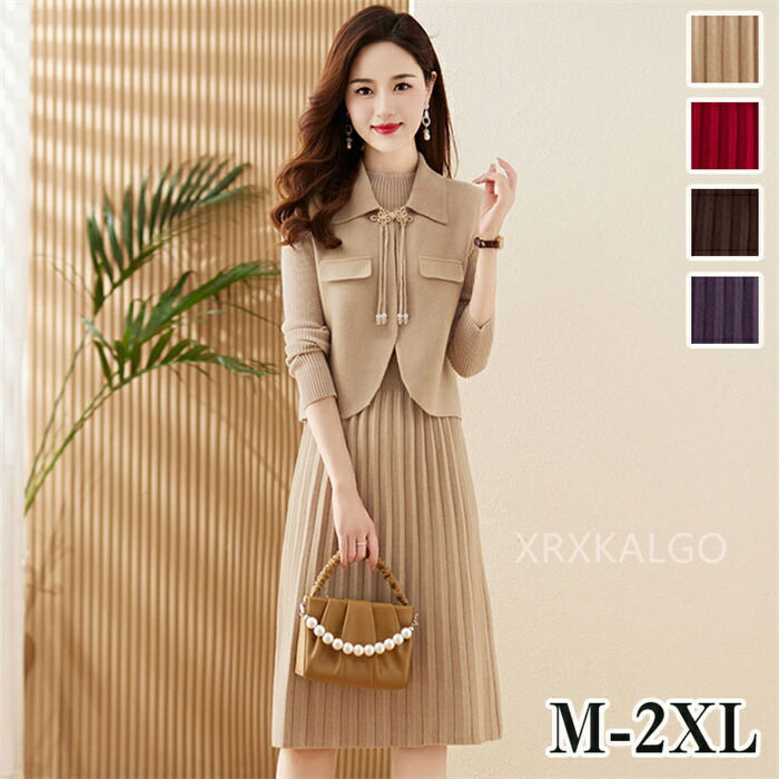 ニット セットアップ レディース ニットベスト 洗える 長袖ワンピース セレモニースーツ リクルート大きいサイズ フォーマルスーツ スカートスーツ オールシーズン 50代 40代 30代 オフィス通勤