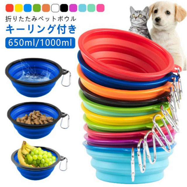 ボウル 折りたたみ 650ml トレー 1l シリコン ペット用 1000ml 食器 水飲み 猫 大さい お出かけ 携帯 水筒 折りたたみボウル 散歩 水やり 容器 カップ えさ入れ キーリング付き