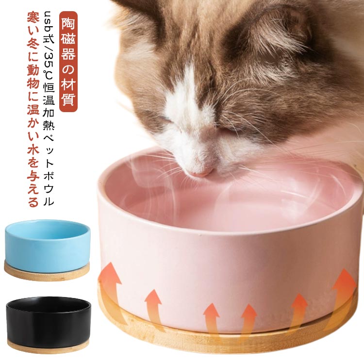 ペット保温ボウル 35℃ usb 加熱 一体型 給水器 食器 フードボウル 恒温加熱 ペット ペット用加熱ボール 犬 猫 セラミック製 猫用ドリンクボウル 犬と猫用の温水ボウル フードボウ 餌入れ