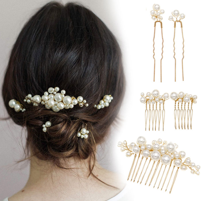 特別な日に上品な華やかさを アレンジ自在のヘアコーム&ピン 5点セット