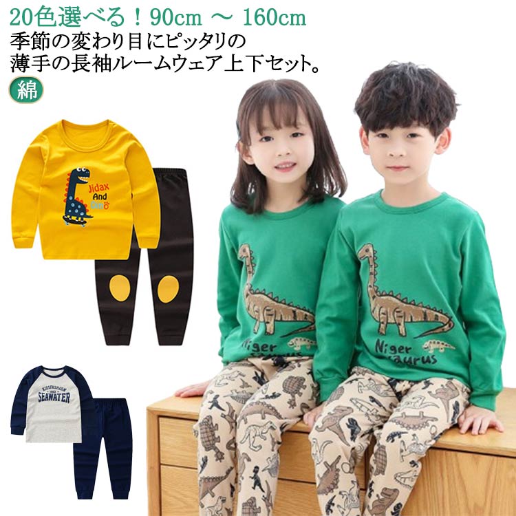 綿 ルームウェア コットン 130 パジャマ 長袖 長ズボン 子供服 上下セット 男の子 寝巻き 160cm 部屋着 総柄 90 100 110 140 150 キッズ 120