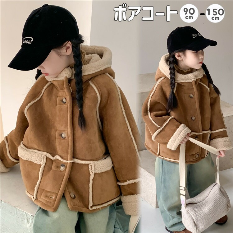 ムートンコート ボアコート 女の子 韓国子供服 冬 キッズ アウター 暖かい 厚手 ボアジャケット フード付き 可愛い ブラウン トップス 防寒服 上着 姉妹 ポケット付き ボタン お揃い