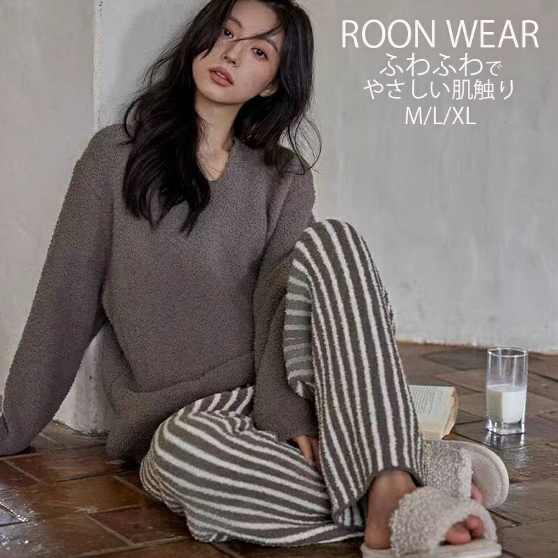 ルームウェア 上下セット もこもこ パジャマ レディース 冬 厚手 ゆったり 大きいサイズ 部屋着 大人 かわいい 長ズボン トップス ブラウス 長袖 秋冬 ゆるふわ 柔らかい 着心地良い