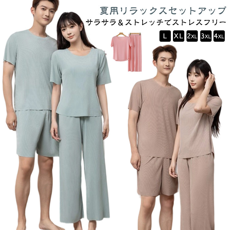 上品 リラックス 涼感 さらっと セットアップ ルームウェアレディース ワイドパンツ半袖tシャツ上下セットメンズ半ズボン部屋着春 夏 春夏 冷感 ギフト プレゼント 半袖 パンツ パジャマ 外出 服