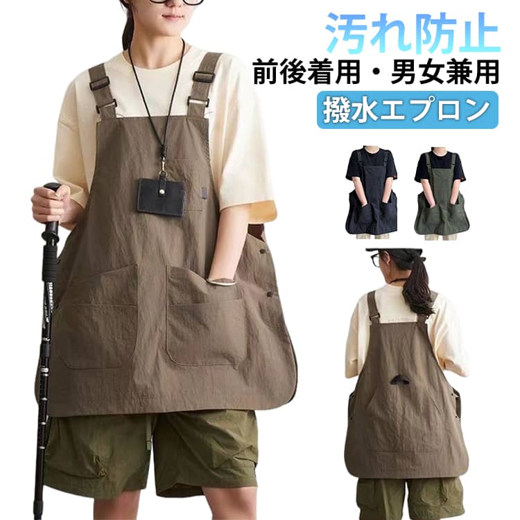 前後着用 2 撥水エプロン 男女兼用 汚れ防止 丈夫 おしゃれ ポケット付き