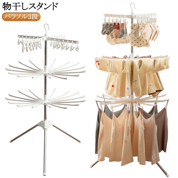 ランドリーラック 折り畳み 室内物干し 物干しスタンド 室内 屋外 折りたたみ タワー型 物干 洗濯 ランドリー パラソルハンガー 洗濯物干し タオル干し 部屋干し スリム パラソル3段
