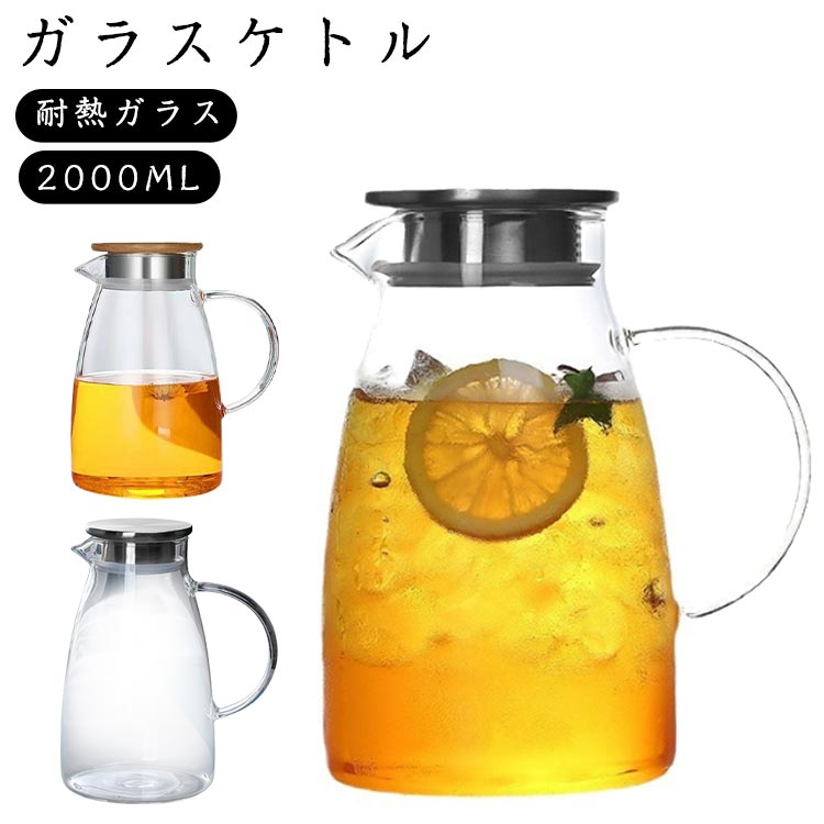 【2000】ガラスケトル 直火 耐熱ガラスポット ティーポット 耐熱ガラス 1.5リットル 直火電気ケトル対応 ホウケイ酸ガラス ピッチャー ステンレス茶こし一体型蓋 2000