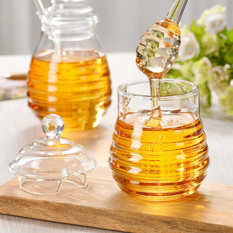 ハニーポット 250ml 蜂蜜 ディスペンサー 透明 蓋付 食器 調理器具 家庭用品 はちみつ容器キッチン用品