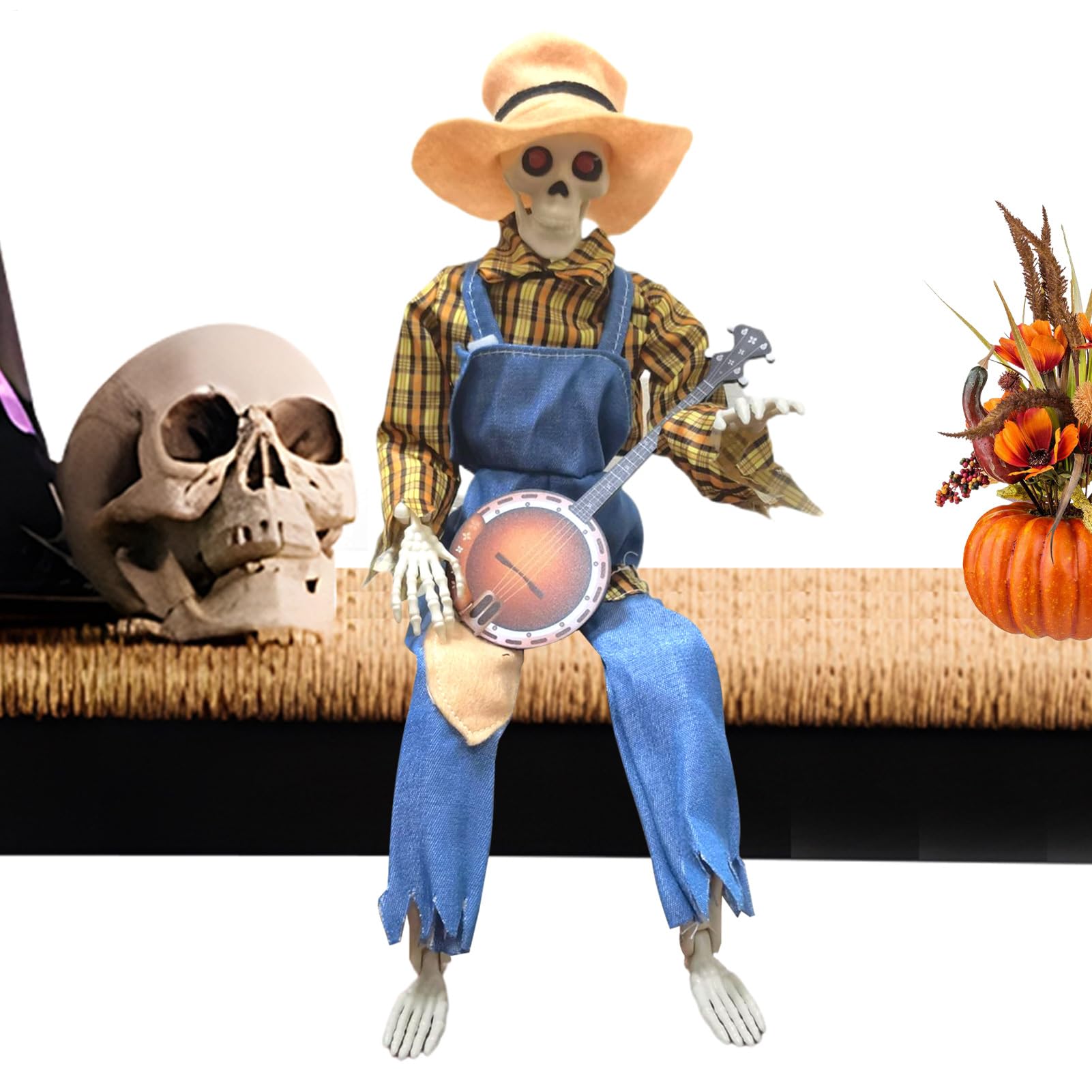 ハロウィーン 屋外用 スケルトン デコレーション - 40cm 動くバンジョー演奏 骸骨人形 | 関節可動式 屋内パーティー お化け屋敷 庭園用 音楽装飾