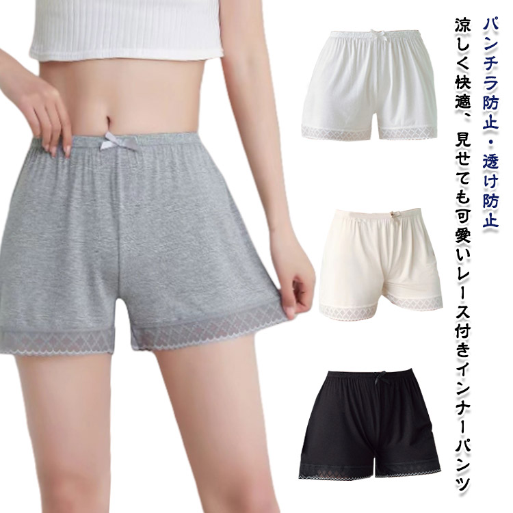 ペチパンツ レディース 見せパン 夏 ショートパンツ 下着 パンチラ防止 インナーパンツ ペチコート パンツ 見せパンツ レース裾 薄手 短パン 部屋着 インナー ボトムス ブラ ルームウェア