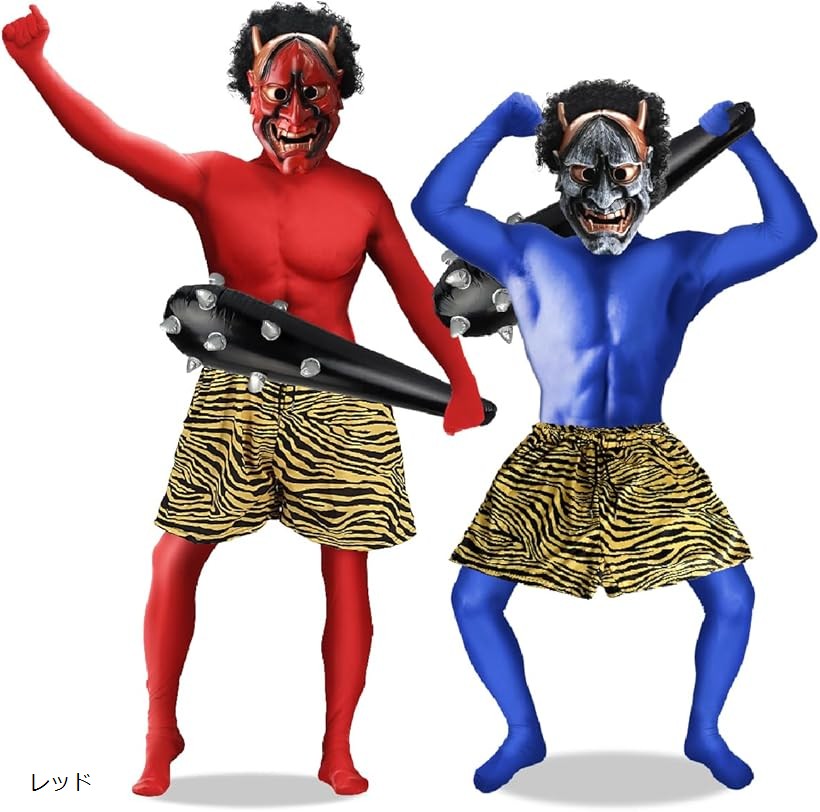絶泣3D リアル 節分 赤鬼 青鬼 タイツ フェイス ペイント コスプレ 変装 仮装 ホビー 衣装