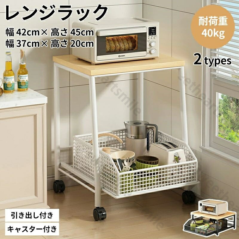 レンジラック 卓上 引き出し付き 電子レンジラック 冷蔵庫上収納 キッチンラック レンジ台 スライドレール 炊飯器ラック 食器棚 引出し付き キッチン収納 引出し リビ キャスター付き