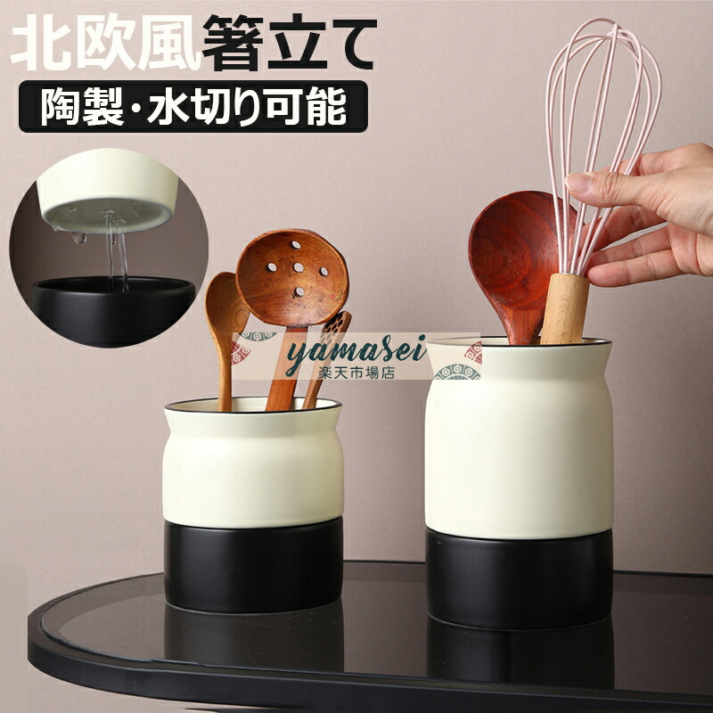 キッチンツールキャニスター 保存容器 シンプル 磁器 水切り可能 キッチン 箸立て カトラリー立て 新生活 おしゃれ 樽