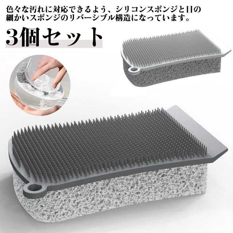 油汚れ キッチンブラシ 3個セット コップ リバーシブル スポンジ グラス シンク 食器洗いスポンジ シリコンブラシ スリム 水垢 長持ち へたらないスポンジ 掃除