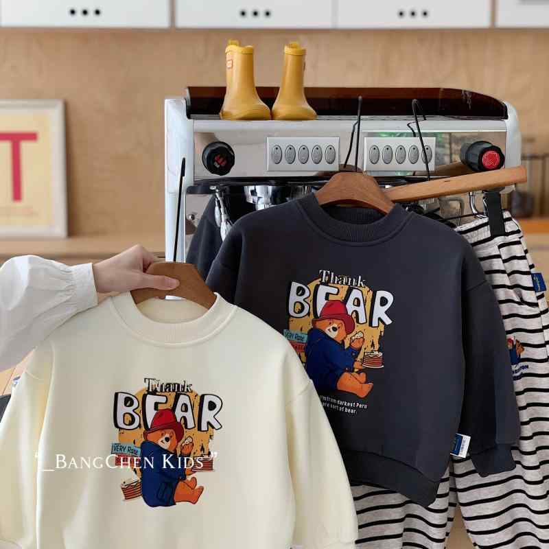 子供服 スウェット 秋冬 パディントンベア 男の子 長袖 裏起毛 トップス ゆったり ミドル丈 ベージュ グレー スポーツ