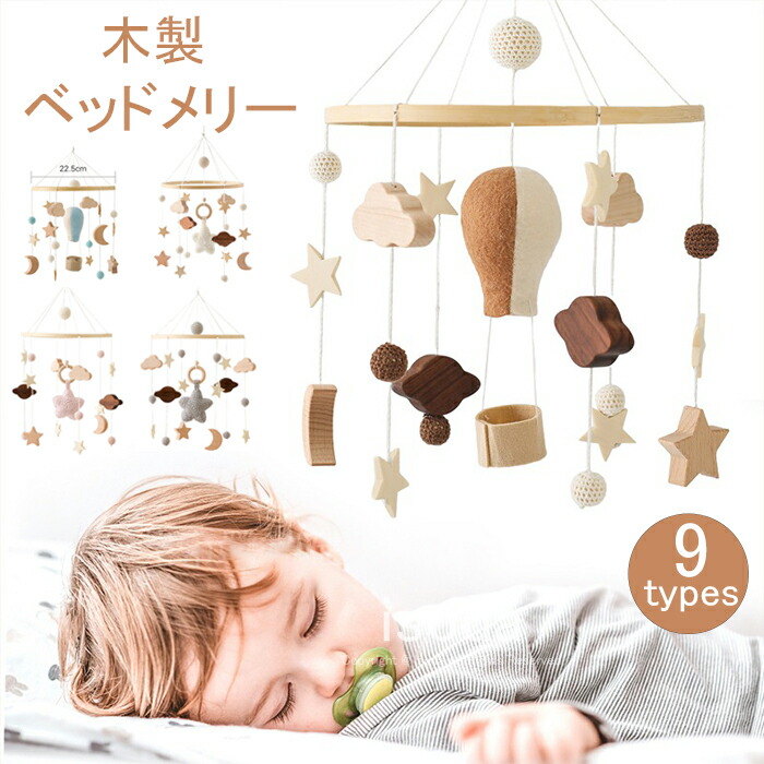 誕生日 男の子 女の子 出産祝いベッドメリー 木製 空 月 星 モビール 壁飾り 子供部屋 インテリア 映え 床置き 木製 寝かしつけ用 風鈴 回転でき 0歳 1歳