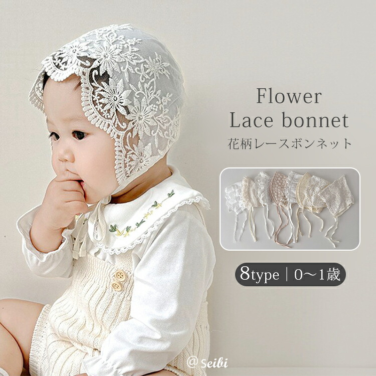 ベビー ボンネット フラワー レース 花柄 新生児 赤ちゃん ナチュラル 帽子 春 夏 リボン 綿 写真 撮影 女の子 海遊び シンプル お洒落 男女兼用 出産祝い 新生児