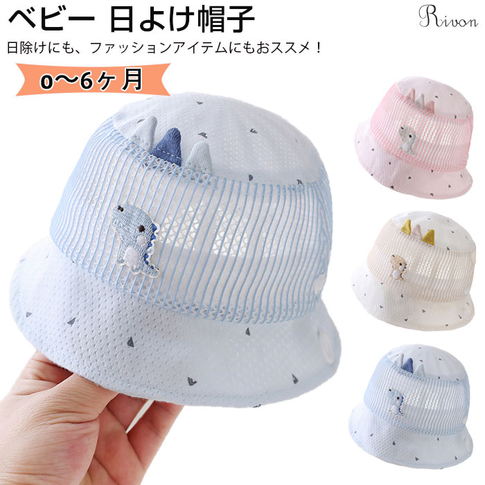 ベビー 帽子 日除け 可愛い 恐竜 耳付き 新生児用ハット 女の子 男の子 キッズ 赤ちゃん つば広 バケットハット 0-6ヶ月 春 夏 UVカット 日焼け防止 サンハット 頭囲38 紫外線対策