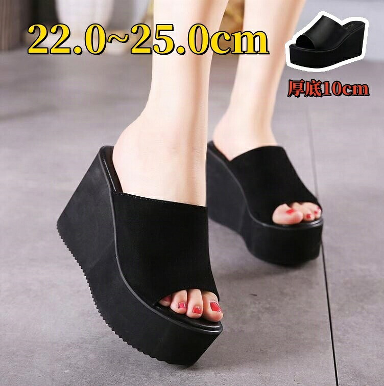 【送料無料】22.0~25.0 ミュール ウェッジソール 厚底サンダル ハイヒール オープントゥ レザー 合成皮革 歩きやすい 痛くない 夏