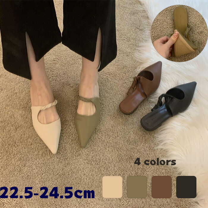 ミュールパンプス レディース ポインテッドトゥ フラット ミュール スリッパ カジュアル パンプス フラットヒール スクエアカット ぺたんこ 歩きやすい 疲れにくい 新作 おしゃれトレンド