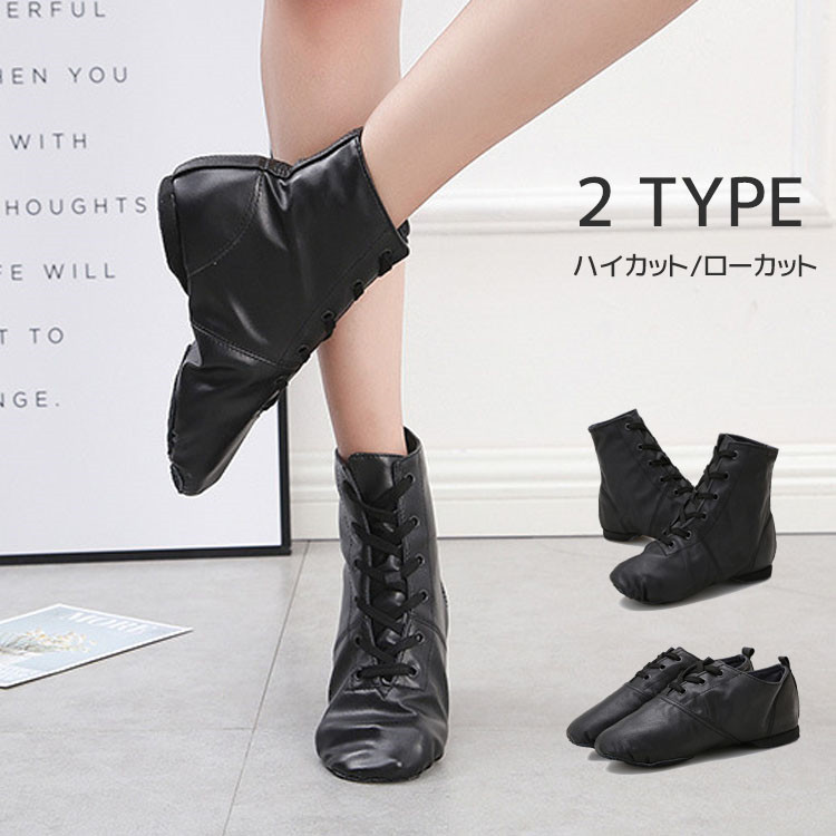ジャズシューズ ダンスシューズ シューズ バレエシューズ チアダンス レディース メンズ キッズ ステージ スプリットソール 柔らかい レッスン ハイカット ブラック 紐タイプ ローカット