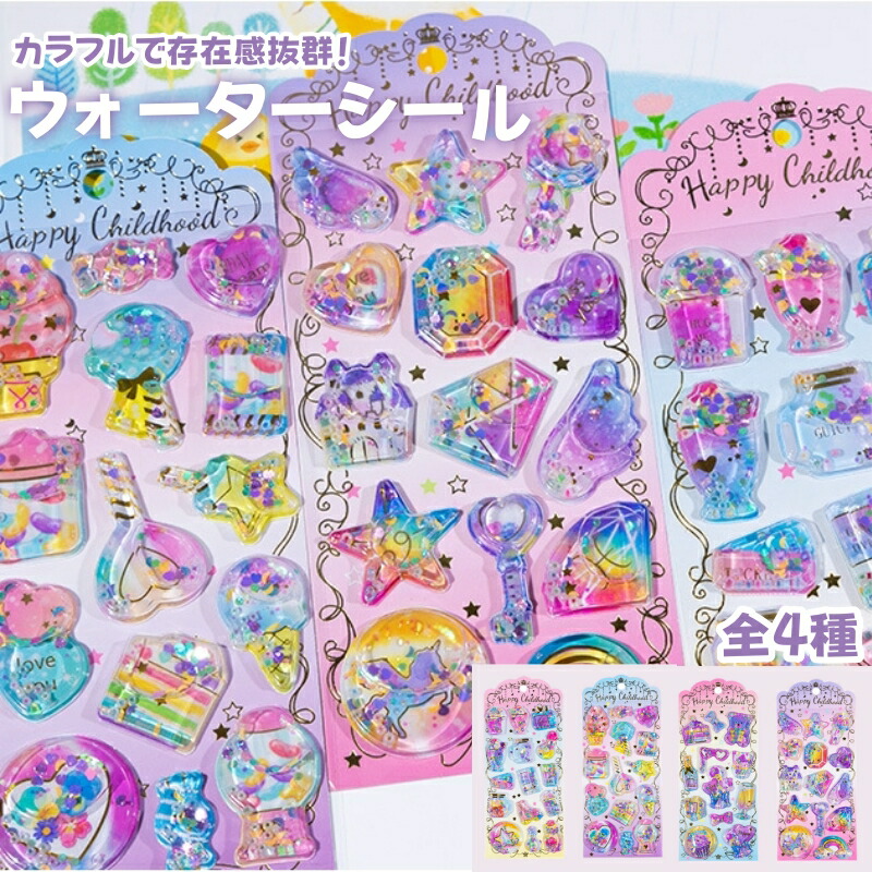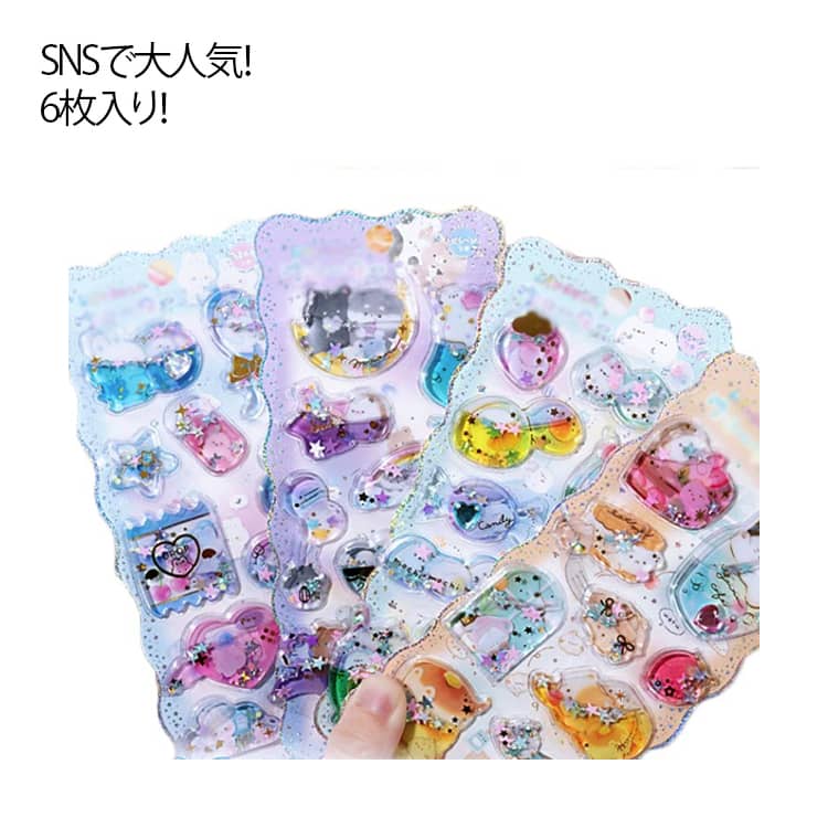 ウォーターシール 水シール シール 水揺れシール 可愛い 6枚入り 水入ってるシール 水入りシール キラキラ ウォーター in ぷくぷくシール ステッカー イン