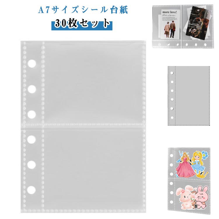 A7サイズ リフィル 6穴 透明 シール帳 シール台紙 a7 はがせる バインダー クリア台紙 カードポケット カードスリーブ システム手帳リフィル 剥離紙 クリア ポケ 3層構造PPシート