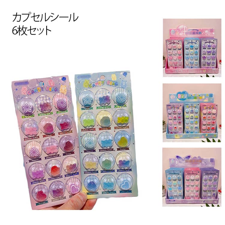 シール 浮き彫りクリスタル カプセルシールメーカー ぶっくり 6枚セット 3D つやつや 立体シール デコシール セット 子供 パーツ 装飾 カプセルシール 女の子 小 デコレーション