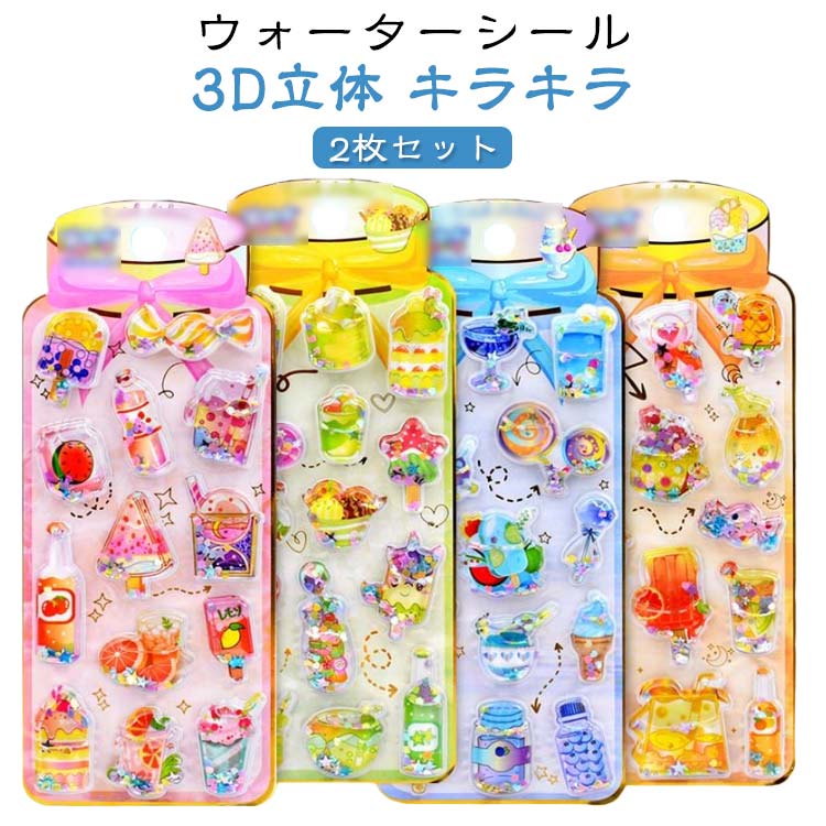 ウォーターシール 2枚セット 女の子 可愛い 子供用 アイスクリーム 3立体 シール キラキラシール デコレーション プレゼント ごほうび 景品 誕生日 クリスマス