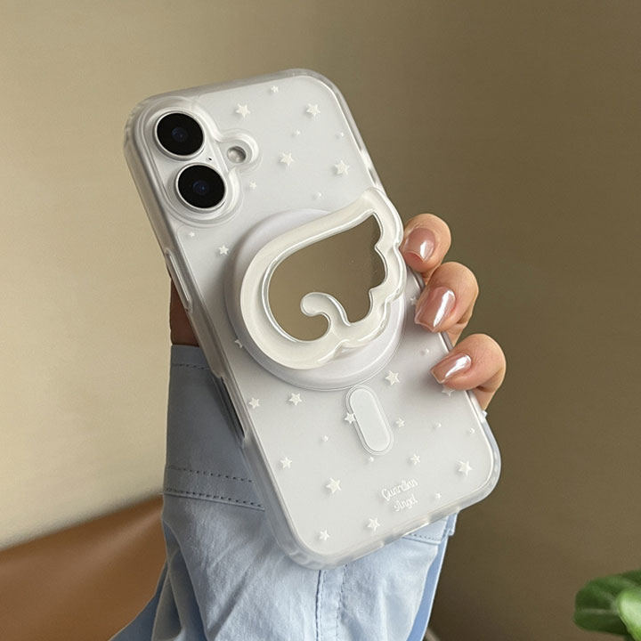 2WAY アイフォンケース持ちやすい マグセーフ グリップトック 半透明 クリア iPhone16ケースミラー 星 アイフォン17ケース ミルキーウェイ ホワイト iPhone14ケース マ 天使の羽