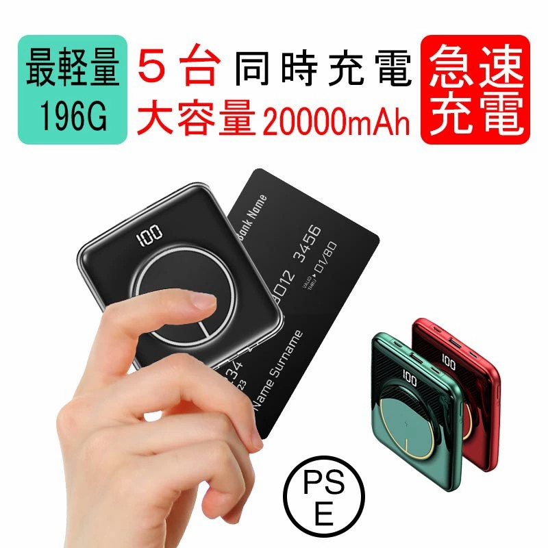モバイルバッテリー 軽量 小型 大容量 ワイヤレス充電器 MagSafe充電器 iphone 20000mah ケーブル内蔵 直接充電 薄型 軽い 最軽量 コードレス ライトニング ケーブル 超軽量