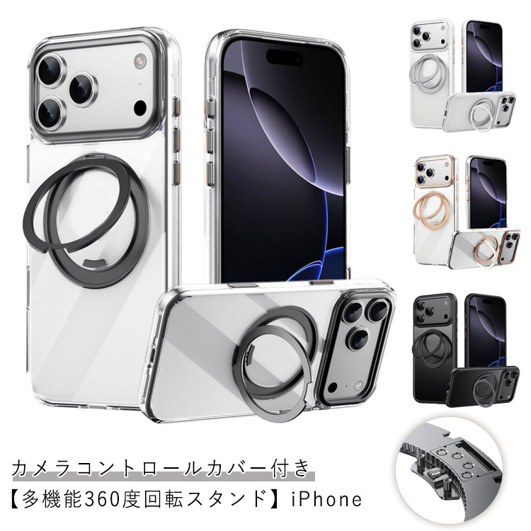 【カメラコントロールカバー搭載 遅延なし】高品質 17 ケース 16 カバー 360°回転スタンド 対応 リング一体型ケース 傷つけ防止 指紋防止 耐衝撃