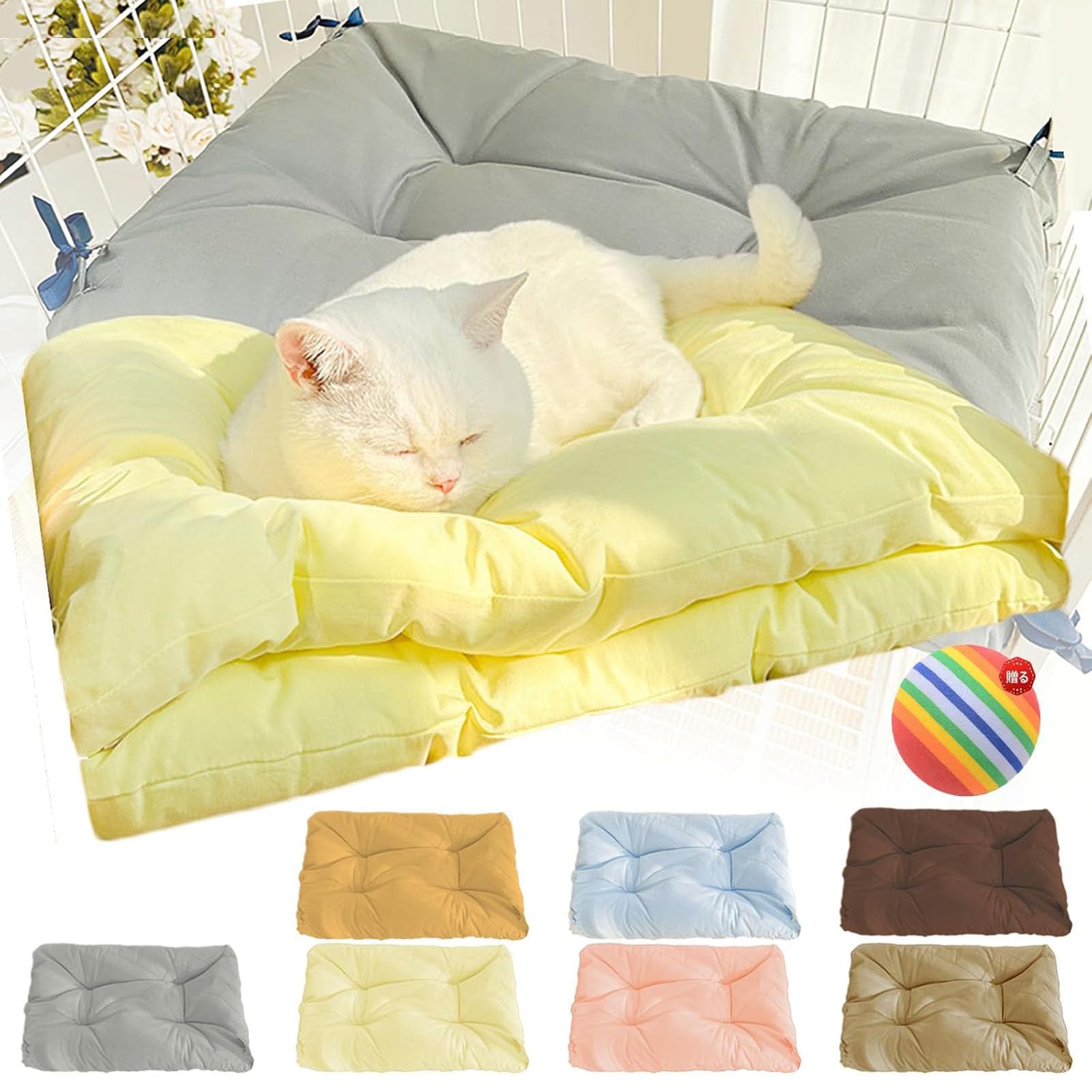 ペット マット ケージ用 猫 ベッド 落ちない 四隅ループ付き 紐で固定できる ふかふか 綿 リバーシブル 柔らか 洗える 犬 クッション ずり落ち防止 通年 ケージ用可能 布団