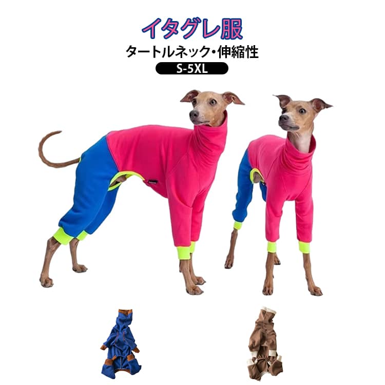 イタグレ服 カバーオール ロンパース 犬 服 タートルネック 伸縮性 インナー 抜け毛対策 部屋着 おうち時間 イタリアングレーハウンド ウィペット ドッグウェア 犬の服